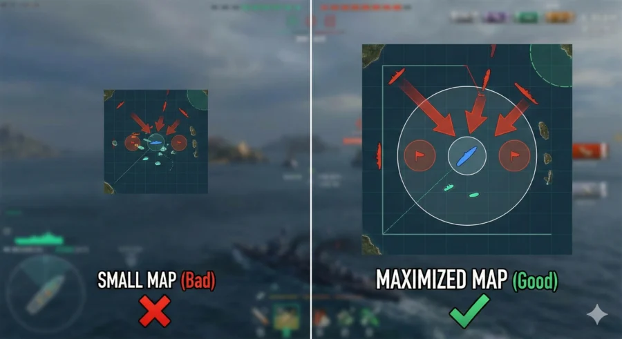 WoWSの初期設定は、画面がスッキリしていて綺麗ですが、生き残るための情報は不足しています。 本日は、私が提督のコンソールを「勝てる仕様」にチューニングさせていただきます。まずは、一番重要なあの計器からです。