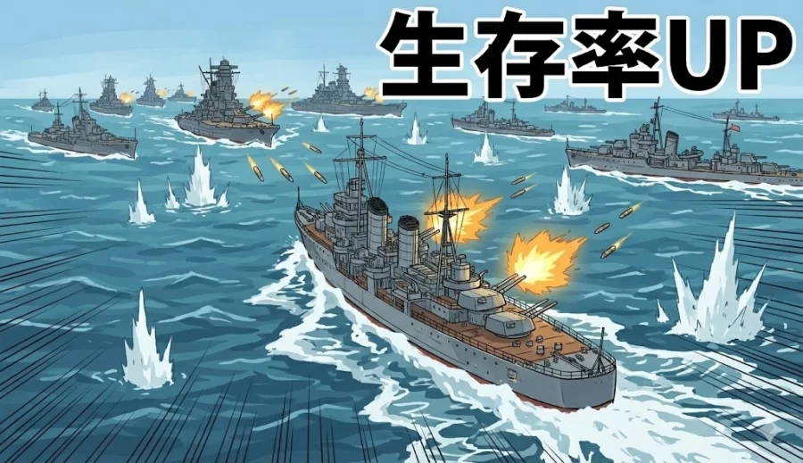 「攻撃したい」という欲を抑え、常に「今の角度は大丈夫か?」と自問自答してください。 硬い提督は、それだけで敵にとって脅威となります。