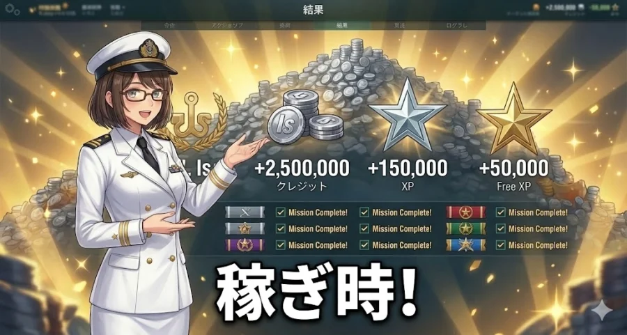 - 稼ぎが美味しい: 敵の数が多いため、ダメージを出しやすく、ミッション消化や「造船所」イベントの進行に最適です。